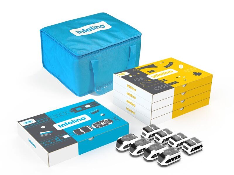 Der intelino Smart Train ist ein modulares Lernsystem für die schulische Praxis. Er verbindet spielerische Interaktion mit systematischem Kompetenzerwerb in den Bereichen Programmieren, Problemlösen und MINT.